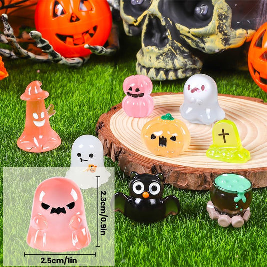 32PCS Halloween Luminous Mini Figures - 32 Styles Glow in the Dark Tiny Resin Miniatures - Pumpkin Skull for Party Favors, Bag Fillers, Garden, Dollhouse Decor