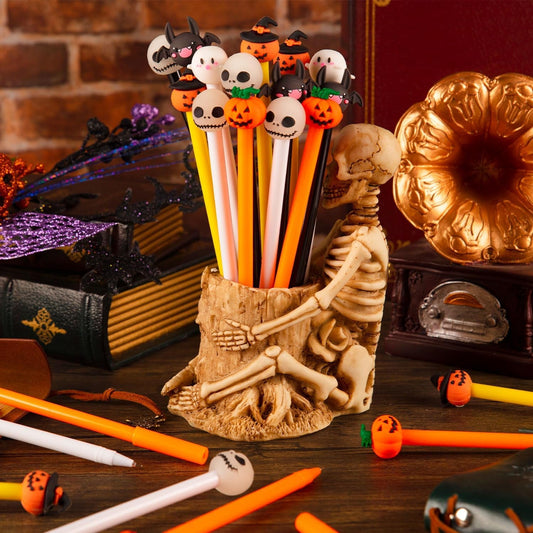 60 Pcs Halloween Pens, Pumpkin Skull Heads Ghost Bat Shape Pens, 0.5 MM Bulk Black Rollerball Pen for Halloween Thanksgiving Party Supplies School Office