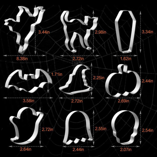 Halloween Cookie Cutters Set,9 Piece Stainless Steel Metal Halloween Cookie Cutters Shapes - Pumpkin, Ghosts, Bat, Black Cat, Witch'S Hat, Skull, Coffin, 1, Silver