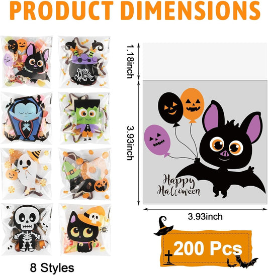 240Pcs Halloween Cellophane Treat Bags Self Adhesive Clear Cookie Bags Self Sealing Transparent Cello Candy Bags Self-Adhesive Plastic Goody Snacks Gift Bags for Halloween Party Favors