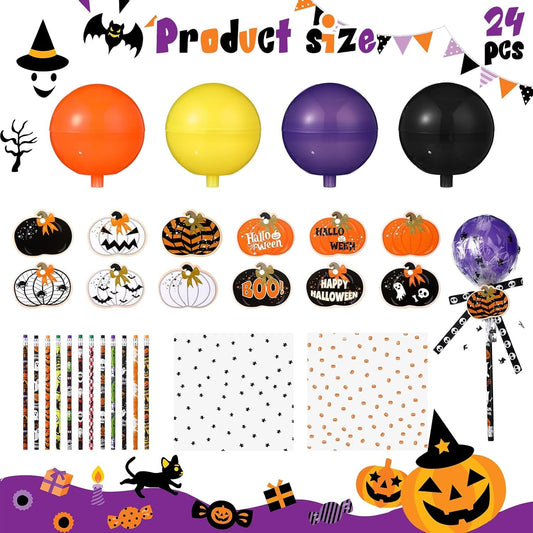 96 Pcs Halloween Trick or Treat Container Party Supplies Halloween Pencil Giant Lollipop Shape Stationery Candy Fillable Hold Plastic Lollipop Storage with Pencil for Classroom Gifts