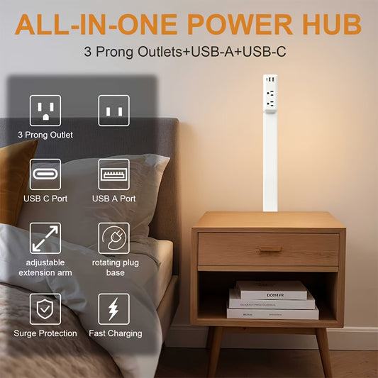 • 🔌 Retractable Socket Extender – USB-A, USB-C & Dual AC Power Outlet with 180° Rotation