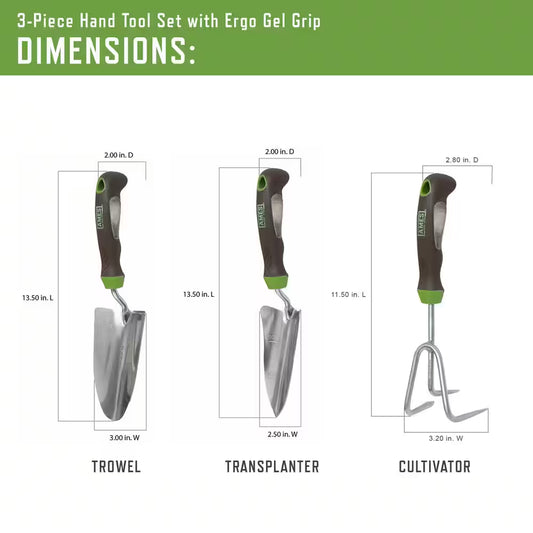 3-Piece Garden Tool Set - Hand Trowel, Hand Transplanter and Hand Cultivator