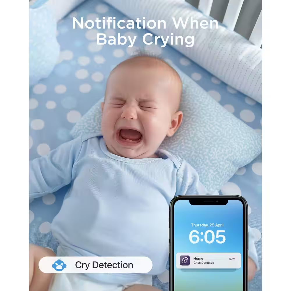 2.5K 4MP Smart Baby Monitor Camera with 64GB SD Card, AI Cry/Face/Area Departure Detect, 2.4G & 5G Wi-Fi