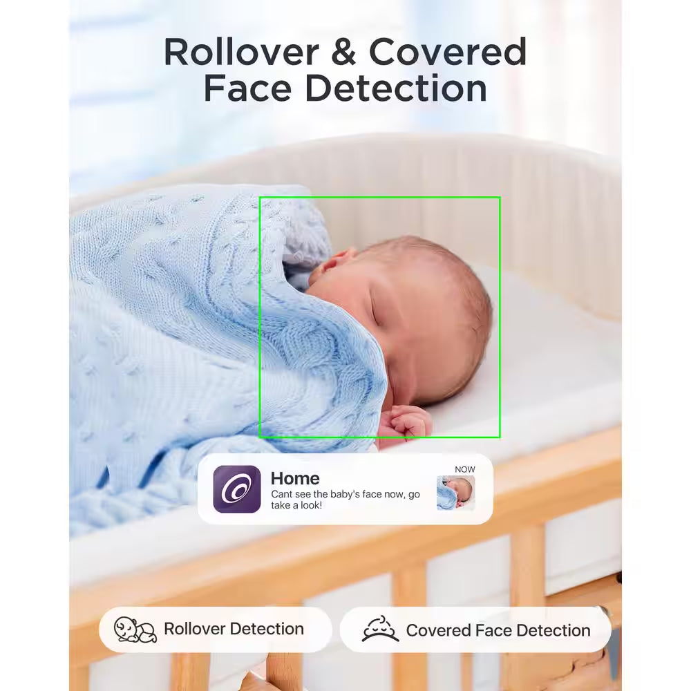 - Covered face detection and multi-angle surveillance this camera baby monitor detects your baby's unsafe sleeping habits like head covering or face-down sleeping, sending app push alerts promptly, with 355° horizontal and 60° vertical rotation, enjoy multi-angle surveillance easily