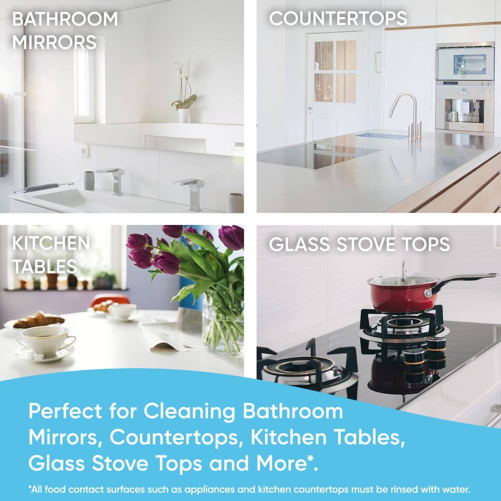 Kill viruses^ and bacteria† that may be hiding on your hard and non-porous surfaces, like kitchen and bathroom counters, with the streak-free shine of Windex Multi-Surface Disinfectant Cleaner. When used as directed, Windex disinfectant spray gets to work on lifting dirt and smudges right away, and kills 99.9% of germs including Staph, Salmonella, Pseudomonas, Strep, common cold), and the H3N2 flu virus. See Windex disinfectant spray bottle for more information.Clean, disinfect and let all the light in. Suitable as a window cleaner, glass stove top cleaner, and disinfectant for glass tables, mirrors, countertops, kitchen tables, door knobs, and more*. Just spray, wait as directed, and wipe on hard, non-porous surfaces.^Rhinovirus Type 37 (common cold), Influenza A2/Hong Kong (H3N2), Influenza B†Staphylococcus aureus (Staph), Enterobacter aerogenes (Enterobacter), Escherichia coli (E. coli), Salmonella enterica (Salmonella), Campylobacter jejuni, and Listeria monocytogenes (Listeria), Streptococcus pyogenes (Strep)*All food contact surfaces must be rinsed with water.