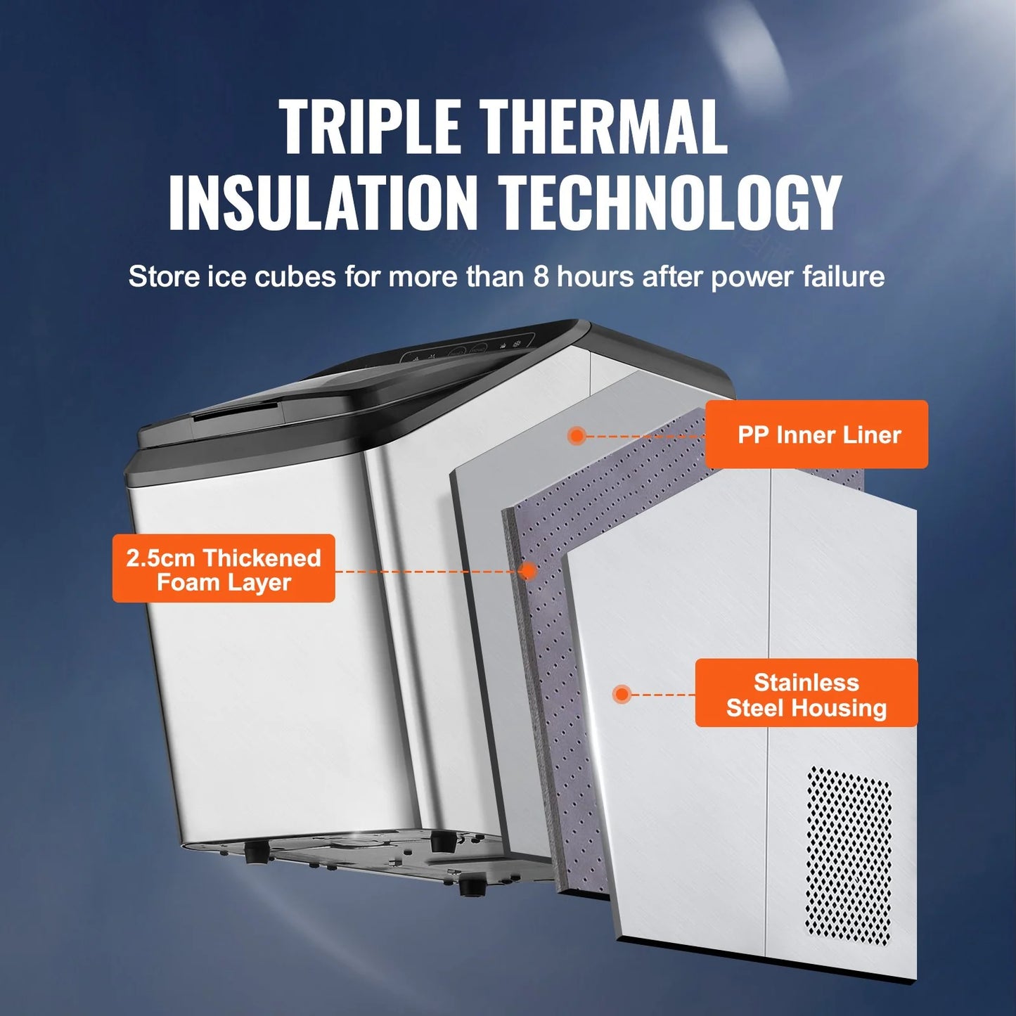 VEVOR Countertop Ice Maker – 30Lbs/24Hrs, Auto Self-Cleaning, Stainless Steel