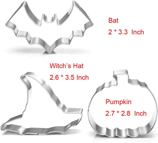 Halloween Cookie Cutters Set Large - Witch'S Hat, Pumpkin, Ghost, Bat and Cat Cutter Stainless Steel