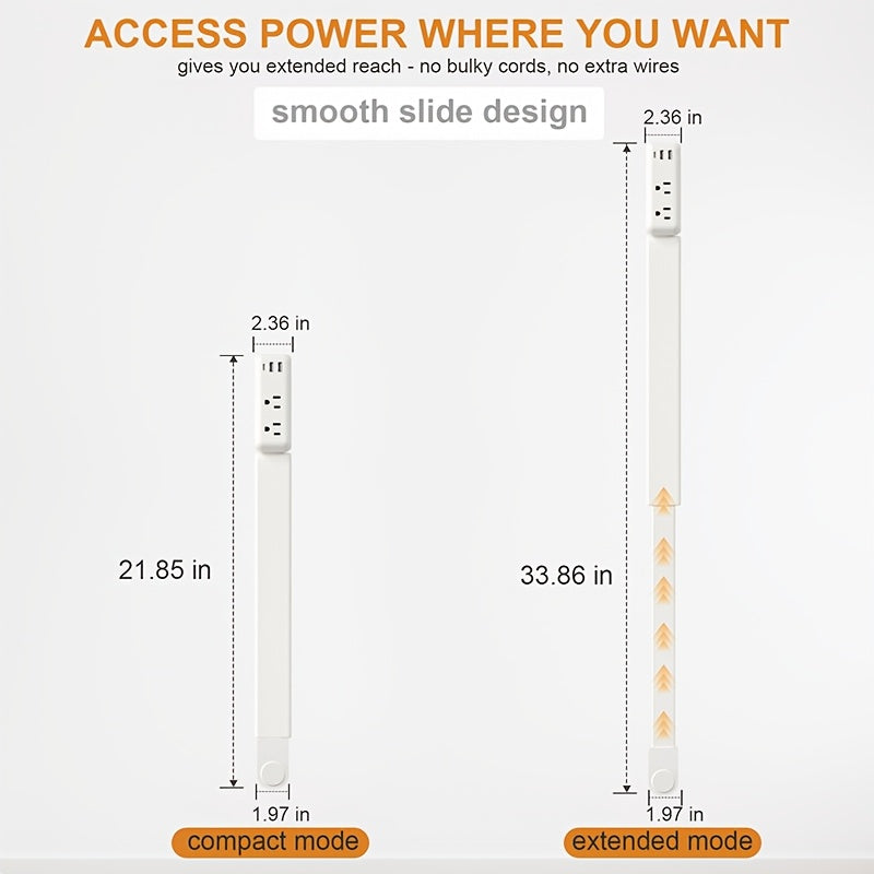 Power your workspace smarter with the Retractable Socket Extender, designed to bring outlets exactly where you need them. With an expandable length from 22" to 34" and a 180° rotating head, this versatile power socket fits perfectly behind sofas, bedside tables, desks, and tight spaces.