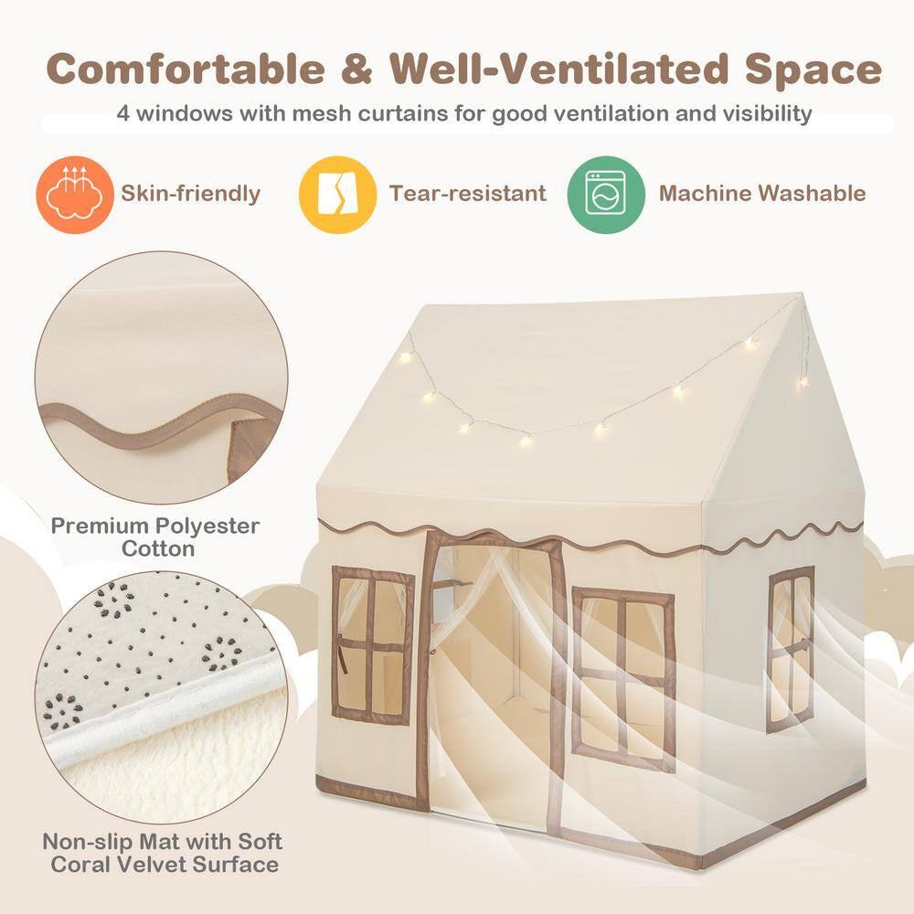 Kids Play Castle Tent Large Playhouse Toys Gifts with Star Lights Washable Mat