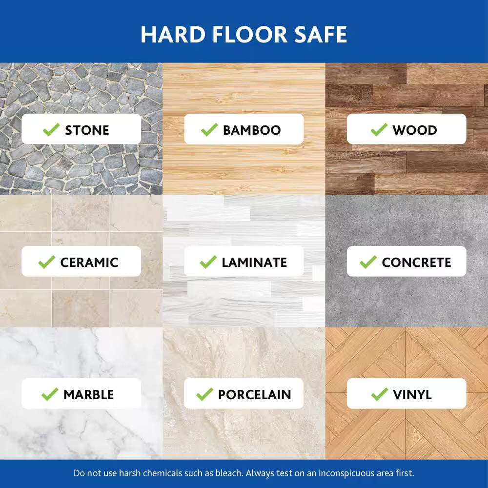 - Safe for all hard surface floors including hardwood, tile, laminate, vinyl and more.